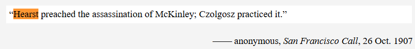 Pulitzer’s guilt over the assassination of the president, even though it was his competitor Hearst’s paper that had inspired the assassination, is long thought to have been a primary inspiration for creating the “Pulitzer Prize.” After all, he and Hearst had walked the nation into a war and an assassinated president, all for advertising revenue. Today’s media environment is little different than the height of Yellow Journalism era. Must we wait for another war or political violence on a substantial level, to put an end to the painful dishonesty of most media today?