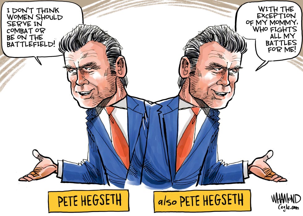 Today’s Pete Hegseth Senate confirmation hearing is a perfect example of incompetence on display by the incoming administration. Their nominee, with zero experience running a large, complex bureaucracy, marginalized by his own National Guard unit for far-right extremism, who has a lifelong record of sexual predation, alcohol abuse, misappropriating funds from charities, racism and hardcore misogyny, is on the hot seat to become our next, Secretary of Defense. Republican Senators are fawning over him. Mike Waltz, a former distinguished service Green Beret and incoming National Security Advisor sang his praises and my own Veteran congressman, Tony Gonzalez of Texas, is apparently in winter hibernation and equally absent from leadership.
