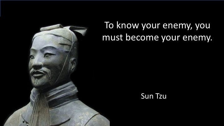 So many of Sun Tzu’s quotes are studied independently in the West and, like all stand-alone thoughts, don’t convey the same meaning as when taken in context. With narrative as my specialty, I see The Art of War as Sun Tzu’s insights into traditional Chinese identity and how it impacts, manages and organizes competition, warfare and combat. I see each quote as one stitch in a richly woven fabric of the modern Chinese approach to pursuing their destiny, achieved via methodology as foreign to the West as it is intimate and intrinsic to Chinese identity. In other words, we in the West, so aligned, are clueless as to what Xi knows both consciously and unconscientiously.