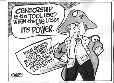 So long as corporate giants and their hitmen in congress refuse to provide oversight regarding the censorship by social media platforms of honest citizens, no one’s First Amendment rights are safe, not one single person.