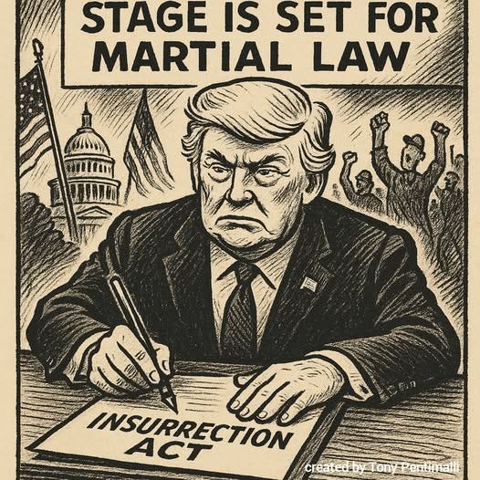 As noted, this past Monday, I’m attempting to bring a little shorter works to you, in order to inform you regarding the torrent of unconstitutional and un-American activities during the ongoing overthrow of our republic, by the MAGA GOP. Their daily Project 2025 Coup actions are simply too many to write in-depth essays about all of them. Today’s edition of TAT is about the many inquiries I receive about social media narratives regarding a Trump and GOP martial law declaration on April 20th, an auspicious day for the far-right.
