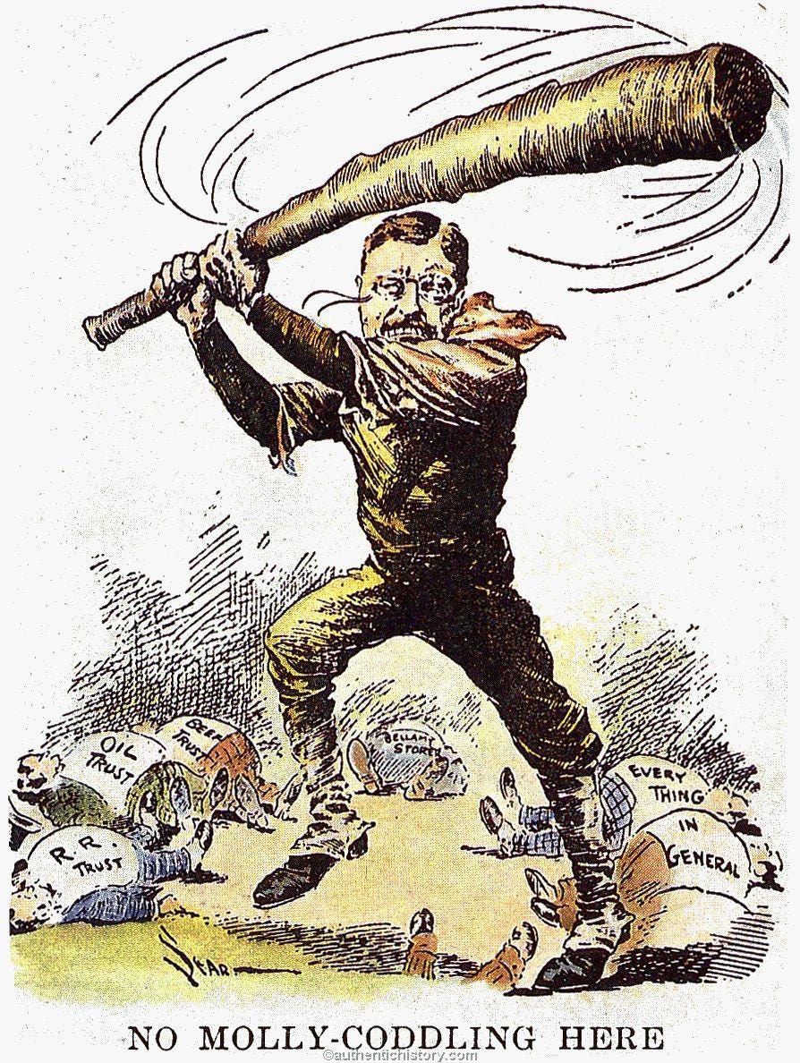 The truth is, while that Teddy Roosevelt is most often associated with trust-busting, it all began with an Ohio Senator named John Sherman of Ohio and the Sherman Act which was passed under the administration of Rutherford B. Hayes, also of Ohio. Teddy though, would wield the power of the US government most effectively in breaking up the trusts, and providing the precedence of reining in the corruption and unethical practices of the Robber Barons.