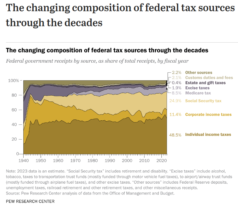 As you can see in the graphic from Pew Research, Corporate taxes have dropped significantly over time while that individual taxes have crept up. In fact, the lowest earners as compared to the highest echelons of industry clearly demonstrate who pays to keep government running. When today’s politicians scream about the budget and associated deficit, especially on the right, they are ignoring the fact that they passed the laws that allows corporate and personal oligarchy to not pay their fair share. Consider this, if our deficit is massive and the top earners both personal and corporate, pay less, proportionately than the rest of us, who is straining under the tax load? Yes, a rhetorical question. It is as always, the Middle Class paying for billionaires to play. On the other hand, it is precisely oligarchy that increases our deficit, most poignantly under the Trump administration.