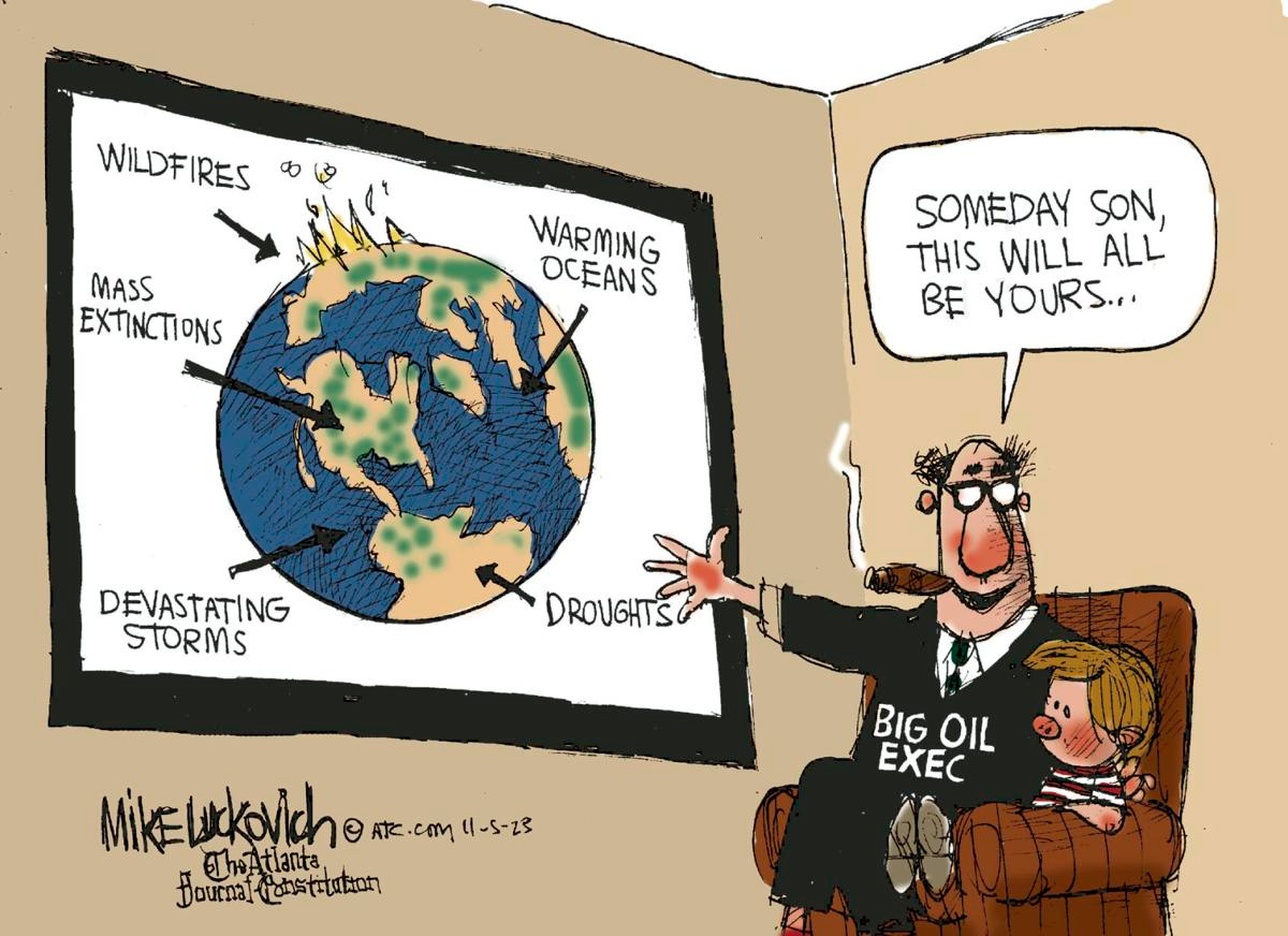 Next time you feel the pinch of corporate price-gouging and high energy costs because of Climate Change, don’t just blame the political facilitators and hacks, blame the core of the problem, oligarchy. In this case, the oligarchs are the individual and corporate oil oligarchs. Our children and grandchildren deserve a healthier planet and a government, not controlled by oligarchy. It’s a fight worth having, don’t ya’ think?