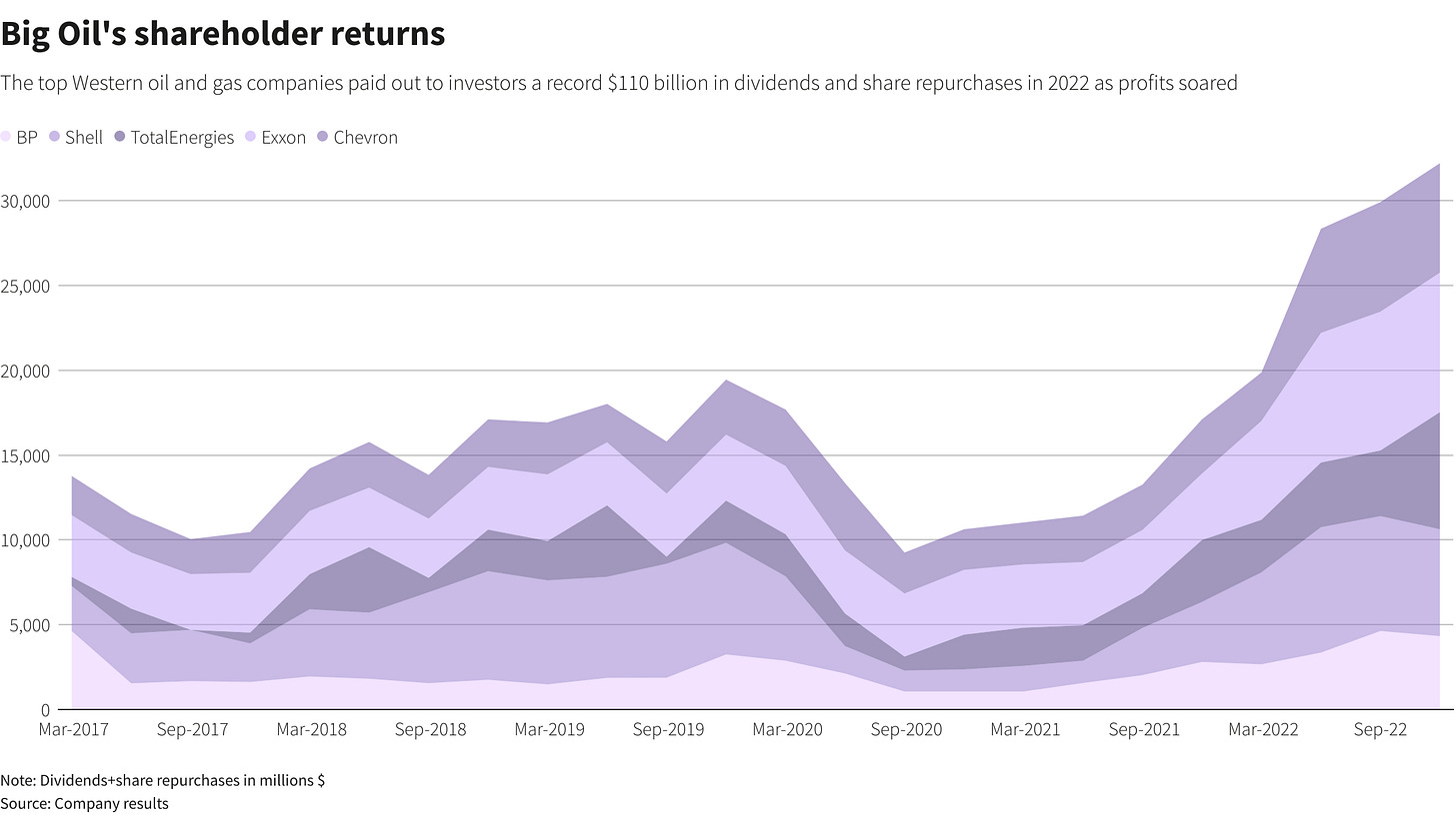 Not only is big oil selling out taxpayers, but they profit wildly from Putin’s invasion of Ukraine. OPEC / OPEC + is largely led by Russia and the Saudis. We have seen at least two production cuts mandated by OPEC which dramatically increased profits for the oil industry. Those cuts also fund Putin’s war machine for his genocidal assault on our allies, Ukraine.
