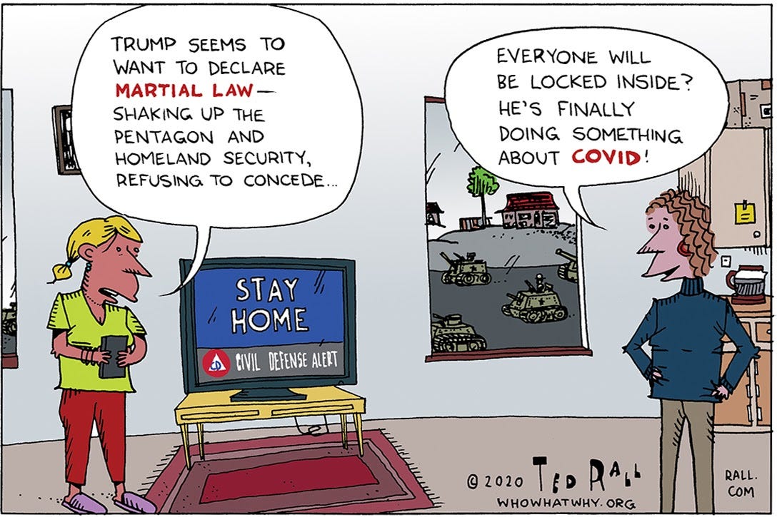 The constitution is silent on martial law, not even explaining who or who may not make the declaration. Still, it has been used some 60 times in our history, although most often during war or domestic armed conflict. Trump doesn’t care about precedent or in fact, the law. This also complicates a well-informed threat assessment. From where I sit, here in TX, things also look a bit more probable for such an act or even something similar, albeit still not terribly likely. I always reserve the right to be wrong and, in this case, I absolutely don’t wish to be wrong.