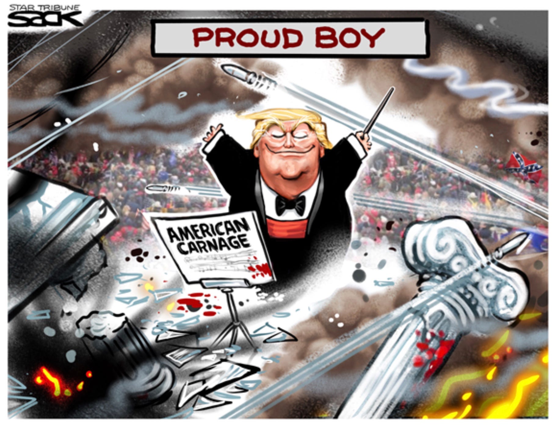 His followers act on his “suggestions” too. Oddly, at least two of the three alleged assassination attempts were from Republicans and one who had actually voted for Trump. January 6th was a long-planned violent extremist coup attempt, complete with an operational commander, Mike Flynn, weapons caches pre-staged in hotel rooms, bombs at both the RNC and DNC HQ and left 140 law enforcement officers wounded. Oh… and yes, 7 dead. Those in the crowd carried a variety of weapons and were charged and convicted for doing so.