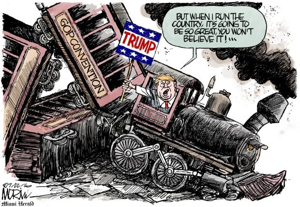 With the new RNC platform, the first since 2016 looking like a near twin to Project 2025 in concept and based on earlier similar efforts like the 1776 Commission Report and Reagan era “fusionist alliances” the MAGA/ GOP is continuing to mold their adherents, no longer principled conservatives, into pliable lemmings who will vote against their own best interests. Tragically, this means that they will take the rest of us down with them. Buoyed with Maga’s fake patriotism, God, Guns and Trump as their ideology of choice, the MAGA/ GOP has shown a remarkable willingness to become act the part of the villain in Trump’s policies and ambitions. January 6th was a near perfect blend of this ideology.