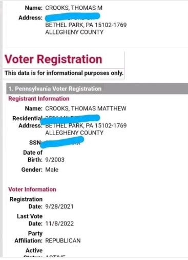 Trump was shot by a registered Republican from a community 42 miles aways from the site of the shooting.