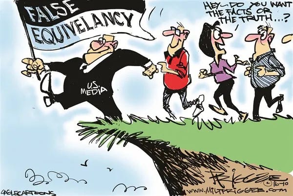 For example, is the GOP is a legitimate political party when controlled by MAGA? Yes, a rhetorical question. Of course, they are not. There is a morsel of truth here, but zero legitimate equivalency at this point in US history.
