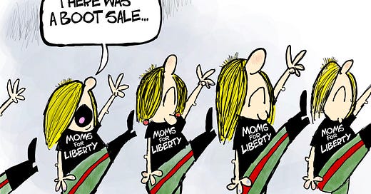As Dillon Collier points out in his reporting, Moms for Liberty was designated a hate group this past summer by the SPLC, Southern Poverty Law Center, known for their excellent reporting and analysis of US based hate groups.