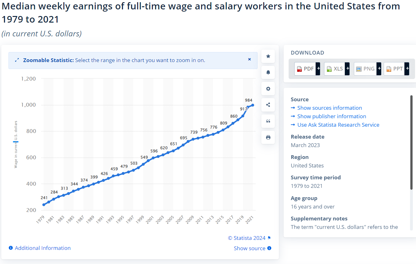 As a matter of fact, in the chart below shows the average increase in worker wages from 1979 through 2021.