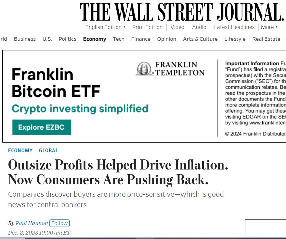 It's not Inflation, its price-gouging by corporate Oligarchs, who are also, the largest campaign donors.