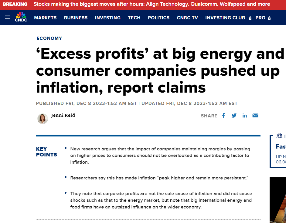 Over time, they have altered the identity of GOP voters to a fake version of patriotism and generally speaking, an alternate reality. This effort has largely been supported by US and foreign oligarchs, for the purpose of decreasing their tax burden and giving them access to and more operational freedom to do as they please. This is largely seen relative to today’s article, as profiteering. This is where we segue into today’s TAT, in order to see that our alleged “inflation” issue is more along the lines of profiteering.