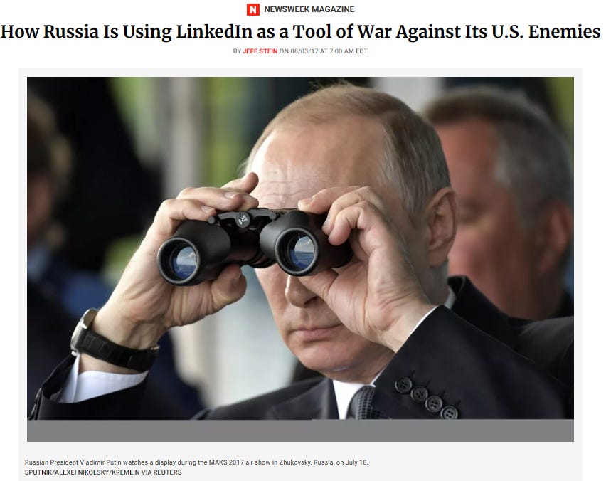 , then of Newsweek and the absolute “GOAT” of national security and intelligence reporting, wrote a long, investigative report titled, “How Russia Is Using LinkedIn as a Tool of War Against Its U.S. Enemies.”Although I am mentioned in this article, my input was largely off-the-record but background for Jeff’s work and support of my colleagues. At the time, I still maintained my high-level security clearance and had to exercise a great deal of caution. So that I could warn others with truth, I intentionally let my clearance expire a couple of years ago. At my age, my best contributions to our national security, can be accomplished far better, without the burden of adhering to the critically important rules regarding public commentary. The American people and other global citizens must hear the truth about our threats, in as plain of language possible, hence this publication, Truth about Threats.