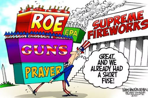 Today’s TAT is long and if you read any of the links, quite deep. For this reason, I’ll try to summarize succinctly. American democracy is largely built on freedom from religion, personal freedom and equality. Our current super majority SCOTUS, seems hell bent on eroding all three, with the past two and a half years of decisions… as proof.