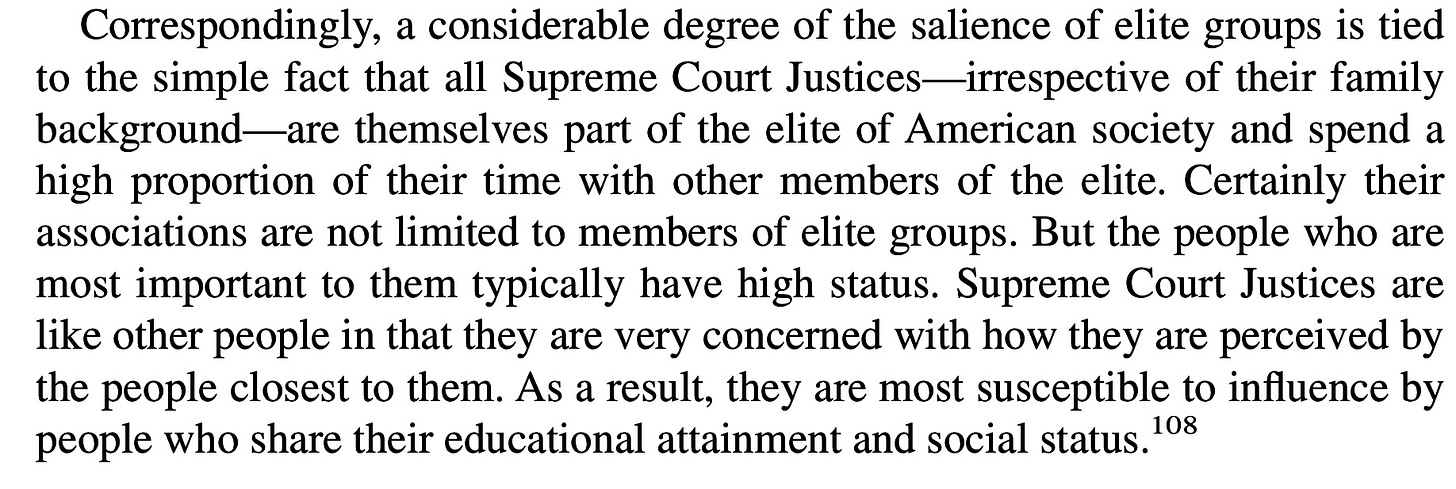SCOTUS support for Elites, which include modern American Oligarchs such as Harlan Crowe for AJ/ Associate Justice Thomas and AJ Alito. Both are severe violations of the Ethics rules for Judges.