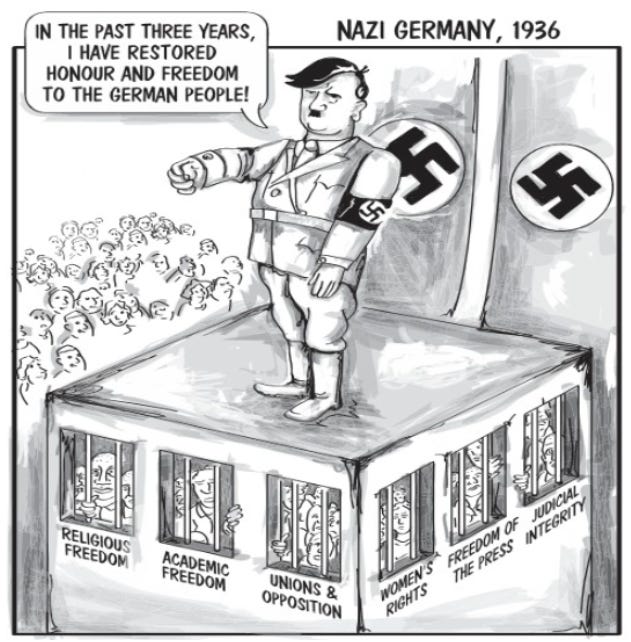 The MAGA folks have already taken several steps to protect their power at the midterms and far more is yet in store. If we don’t plan for and begin acting assertively against their evil, we’ll never be rid of these insurrectionists. In other words, if we sit on our collective hindquarters, without strong actions, I believe that the 2028 election will merely be for show, much like the Weimar Republic became for Hitler, once he was appointed Chancellor in 1933. Historical parallels are often, exemplary in explaining threats. Now, let’s take a little bit deeper look.