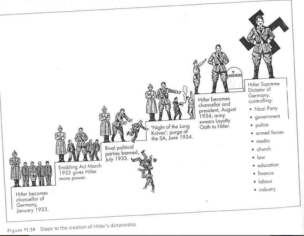 "Gleichschaltung was the process of the Nazi Party taking control over all aspects of Germany. It is otherwise known as coordination or Nazification. The process primarily took place between 1933-1934. The Nazi’s started with the Civil Service , issuing the Act for the Restoration of the Professional Civil Service on the 7 April 1933. This act legalised removing anyone of non-Ayran descent from the civil service. In the judicial system specifically, this act removed any judges that were deemed non-compliant with Nazi laws or principles. This act was reinforced by the German Civil Service code of 26 January 1937, which retired any judges or judicial official who would not intervene in cases and rule in favour of the Nazis. The People’s Court, a court created by the Nazis in April 1934 with judges chosen specifically for their Nazi beliefs, replaced the Supreme Court. With these measures in place, the Nazification of the judicial system was complete. Gleichschaltung was applied across every possible aspect of government policy. To take control of cultural policy, the Nazis appointed Joseph Goebbels as Minister for Public Engagement and Propaganda on the 13 March 1933. Goebbels became responsible for controlling the national media, film, theatre, arts, and other cultural aspects. Goebbels soon radicalised each of these areas, ensuring that they advocated Nazi ideas. Whilst Gleichschaltung aimed to reach every aspect of rule in Germany, this was not always possible. Local governments proved more difficult to infiltrate, and even at the end of 1945 only 60% of local mayors were Nazi Party members. Despite this, on the whole, Gleichschaltung was largely successful. By the end of 1934, the Nazis had managed to infiltrate and take control of every major aspect of German government." - How did the Nazis consolidate their power? - The Holocaust Explained