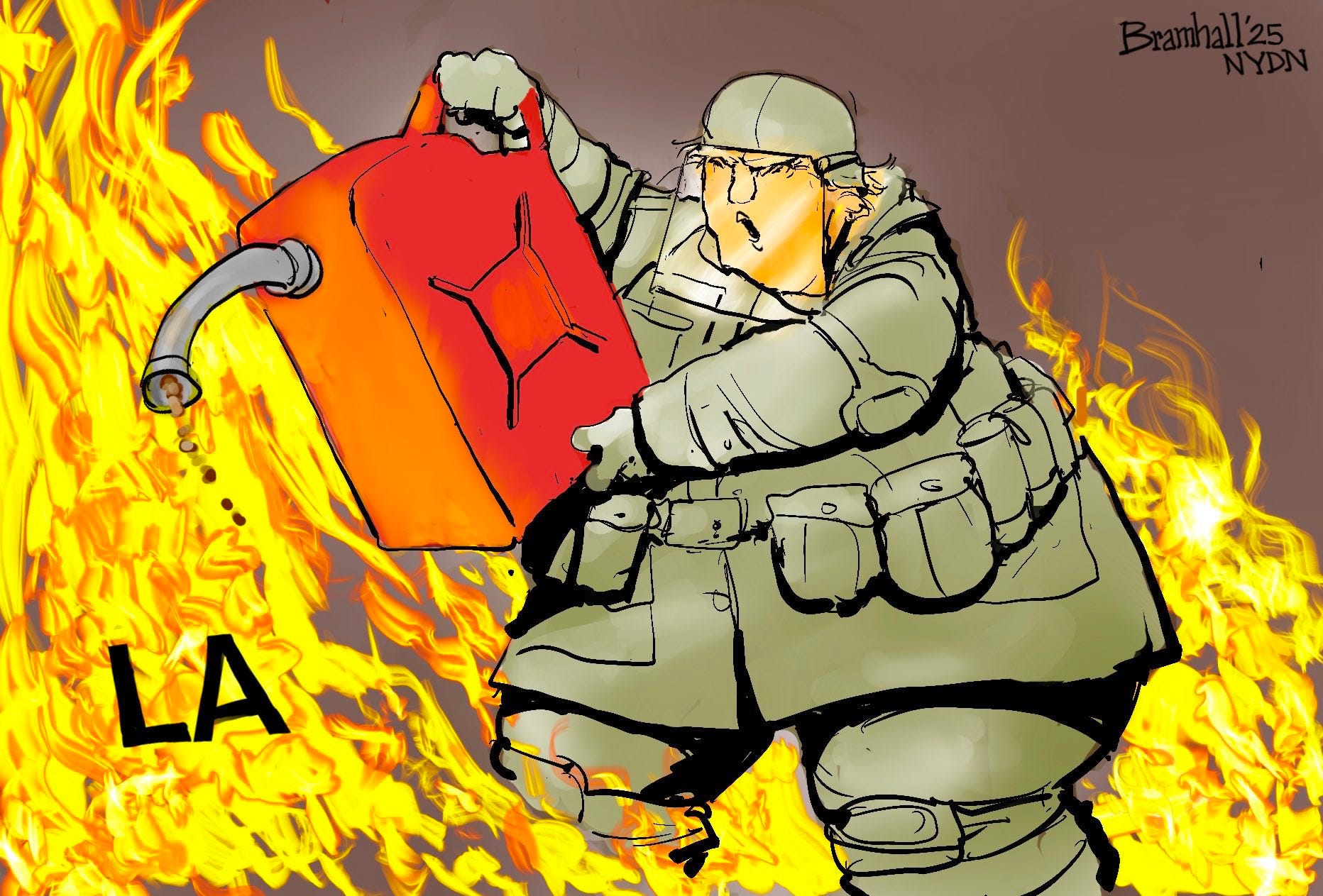 My laptop just received a news update regarding troops mobilized to the LA area for duty against the protesters. Apparently, Our terminally immoral and malignant narcissist POTUS, has just ordered an additional 2,000 National Guard troops to LA. He seeks escalation, in order to justify Martial Law. This must not be allowed to occur. Massive, loud, non-violent and non-partisan resistance is the right answer, not destruction of property or injury to human beings.