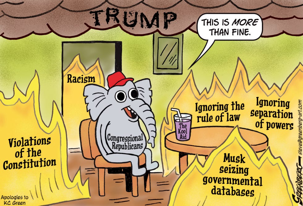 At this phase of our current GOP coup, we must have every possible American on the side that honors our constitutional republic, not the side of those attempting to overturn it. There are plenty of delusional Trump/ GOP voters, enabling the Putinesque regime in the White House. I see these voters as an excellent opportunity to gain support for the restoration of our republic. Trump and the Republicans, want a civil war to firm up their control over the US. They have not made as much Project 2025 progress as they’d like, since January 20th. This gives us opportunity to put heavier pressure on the administration, especially if we target the home offices of all congressmen, for our peaceful protests.