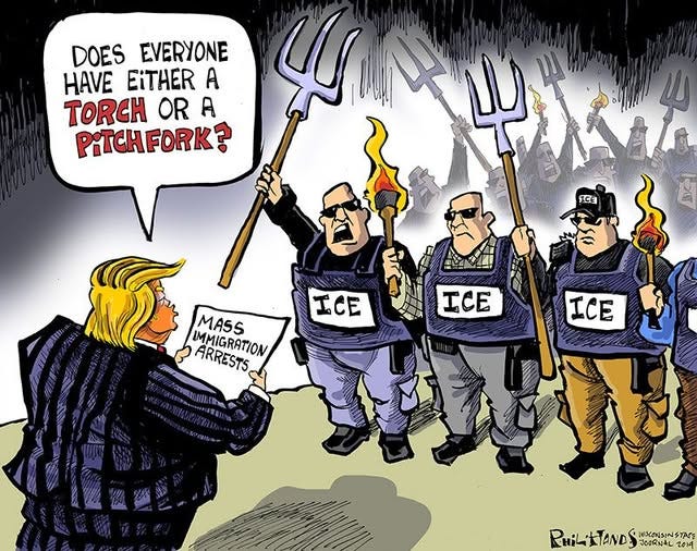 One the other side of the protests, some of those protesting are making grievous mistakes, if they wish to be taken seriously. Demanding an end to ICE and immigration enforcement, is patently ridiculous. All nations have rights regarding their sovereignty. There is a need to well manage immigration effectively and morally. Both parties have failed miserably for decades, to come up with comprehensive immigration reform. This leaves us victims of the endless stream of Executive Orders, spewing from the GOP’s Oval Office resident.