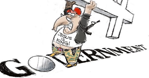 - that Christians have been made to suffer unjustly, leaving them no alternative but to respond with revolutionary zeal to preserve the United States as a great Christian nation.