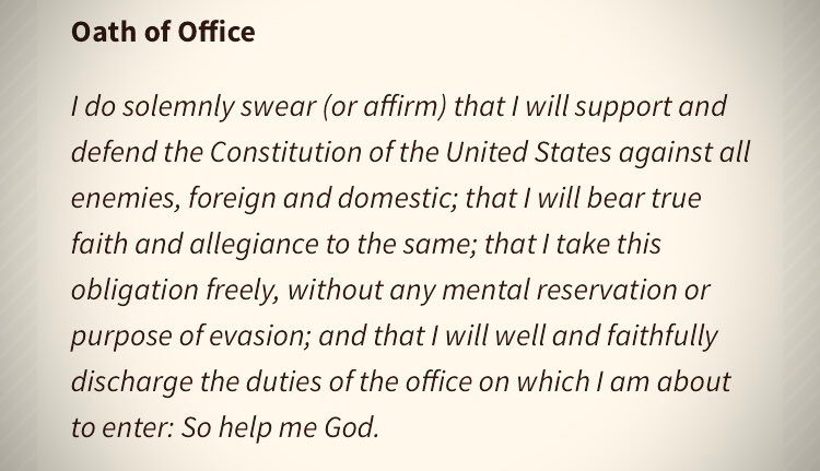 As a retired US Army officer, I also have sworn the same oath as those elected to our Congressional and State officials. That phrase: "I do solemnly swear (or affirm) that I will support and defend the Constitution of the United States against all enemies, foreign and domestic; that I will bear true faith and allegiance to the same; that I take this obligation freely, without any mental reservation or purpose of evasion; and that I will well and faithfully discharge the duties of the office on which I am about to enter: So help me God" is near and dear to me, even in retirement.
