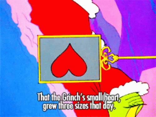 “And what happened, then? Well, in Whoville they say – that the Grinch's small heart grew three sizes that day. And then – the true meaning of Christmas came through, and the Grinch found the strength of ten Grinches, plus two!”