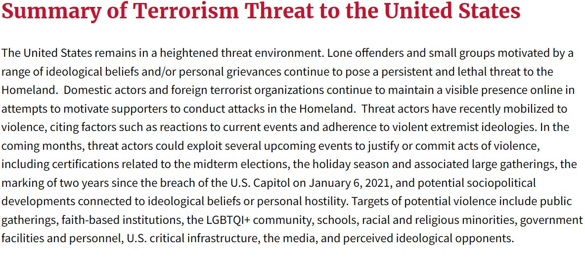 I will do my best to summarize this succinctly. This severe threat is malign influence. The threat actors are foreign enemies and domestic enemies of our true American identity/ values.