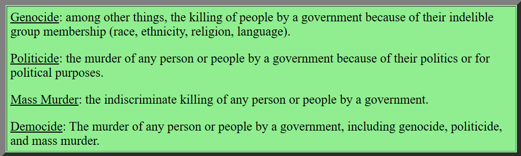 The real question that I would implore readers to consider is: “why do we still tolerate genocide, democide, mass murder and politicide?