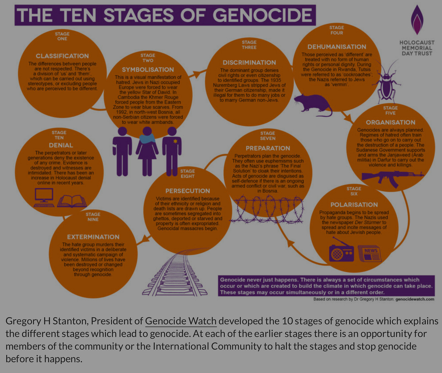 All change begins at home. If you cannot stomach genocide, then you have a role to play, called voting. If your elected representative won’t support calling out and acting against any type of democide, they are not worth your vote. After elected, they fail to work towards solutions, they probably should not get another election victory. Those voters today that support Putin, Russia or wish to deny Ukraine all the support it needs, need to both check their patriot card at the door and give up on considering themselves moral. If someone supports any type of racist ideology, they truly are not religious. Hate speech is always oriented around an ideology that if carried to its logical extension, ends in some form of genocide. Yes, this rule is ironclad. If you recognize the United States in the chart below, it means that you are seeing things clearly. My professional opinion is that the US, in our current state of hyper-partisanship, we are at stage 6.