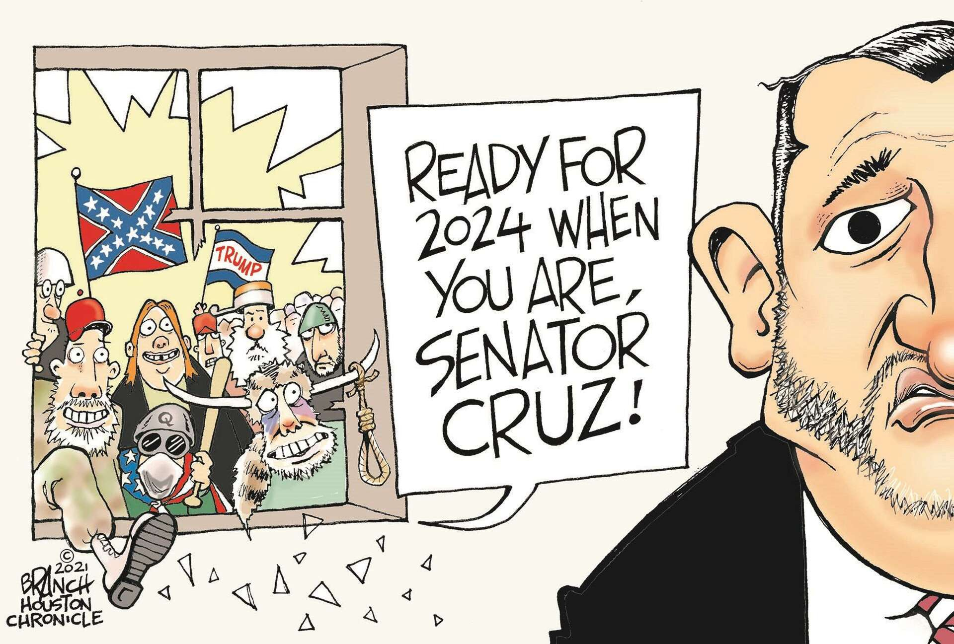 "An examination by The Washington Post of Cruz’s actions between Election Day and Jan. 6, 2021, shows just how deeply he was involved, working directly with Trump to concoct a plan that came closer than widely realized to keeping him in power. As Cruz went to extraordinary lengths to court Trump’s base and lay the groundwork for his own potential 2024 presidential bid, he also alienated close allies and longtime friends who accused him of abandoning his principles. Now, Cruz’s efforts are of interest to the House committee investigating the Jan. 6 attack on the U.S. Capitol, in particular whether Cruz was in contact with Trump lawyer John Eastman, a conservative attorney who has been his friend for decades and who wrote key legal memos aimed at denying Biden’s victory." - Inside Ted Cruz’s last-ditch battle to keep Trump in power - The Texas Tribune - By Michael Kranish, The Washington Post - March 28, 2022El Paso Times: Congress police its own and vote to expel Cruz. "Cruz is a known agitator. This time his actions contributed to an insurrection, a violent uprising against the United States government. Mixed in the angry mob were people calling for a revolution and overthrowing our democracy."