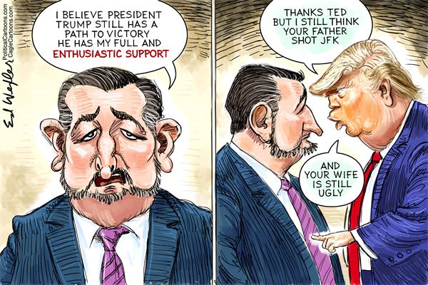No matter what party beliefs you hold, it comes down to voting for a decent, moral and accomplished opponent named Colin Allred, or a spineless Teddy, who attempted to overthrow the country and doesn’t represent a single Texas nor American value. Morality, patriotism and the constitution, are no longer in Ted’s dictionary. As long-time readers know, I do not support a political party but I sure as hell will speak up strongly, when a party as absent of American values like the MAGA GOP attempts to overthrow our constitutional republic. This doesn’t only include Ted, but he is a primary leader of such efforts. I will say this to those MAGA Texas voters and from a very well-informed perspective regarding January 6th, Ted is a Seditionist, and you cannot call yourself patriotic by voting for a Seditionist and coup plotter. So Texas, what say you? Are you in support of a traitor or are you an American that supports our constitution?