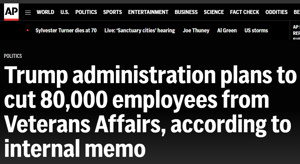 This is the first of two posts today. As long-time readers know, I get up and over coffee, peruse the news and decide what to write about. Today, I came across a startling (in normal times) article from the AP, about the DOGE cuts intended for the VA/ Veterans Administration. I will always honor my oath to the nation and its associated commitment to my fellow, brothers and sisters in arms, past or present. Today’s AP reporting triggered a strong response from me that I originally posted to Facebook.