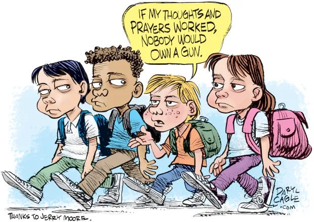 Here in Texas, the GOP often sends their kids to private Christian schools with armed guards and far more that in theory keeps them safe. No one is safe in an America infested with weapons of war. NO ONE!
