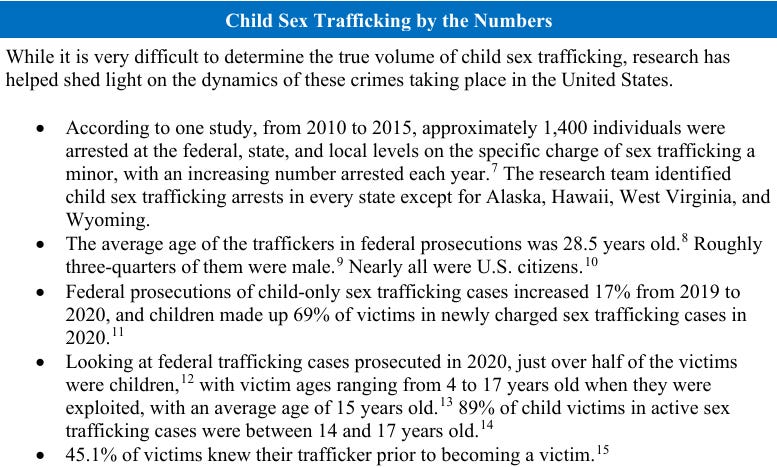 I truly don’t know how Republican voters sleep at night over issues like this. I never read, hear or watch a story about these victims that I don’t picture my own daughters and now granddaughters. Even in prison, child sexual abusers, are despised and at-risk. How is it that some of our worst, imprisoned criminals, have more morality regarding child-sex abuse, than Republican voters? It’s not a rhetorical question. This is but one reason that on the right side of the aisle, we have Christian Nationalists, not Christians. The numbers of trafficking victims is staggering and every single one, is a tragedy for family, friends and communities.