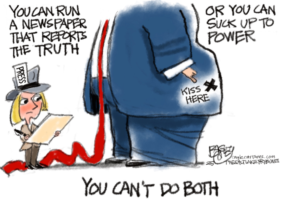 A deep part of my military experience within the US Special Operations Command, revolved around understanding coups, insurrections, terrorism, extremism and violent extremism etc. The indicators for such similar upheaval here at home, are written all over today’s GOP. The unconstitutional, un-American Project 2025 is a perfect example. Those elected Republican officials that blindly support Trump, Musk and Putin’s intended final design for our government, are complicit and I mean every, single one. They know better but are absent a backbone, let alone a moral, patriotic spine. Those who voted for Trump and other submissive GOP office holders, are also complicit, even though most of them, are brainwashed. More on this after the cartoon. This is not Trump’s first administration. We all know exactly what he and the GOP are, after round one, 2016-2020. They supported him and the party anyway.