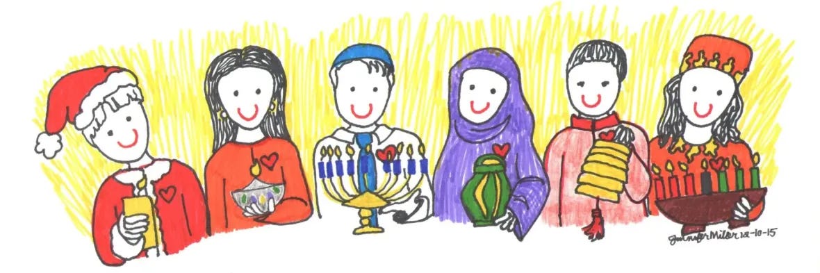 Happy holidays Merry Christmas Happy Chanukah Happy Kwanza Happy New Year Warm wishes for Winter Solstice… and the countless other greetings around the world, that brighten everyone’s holiday season.