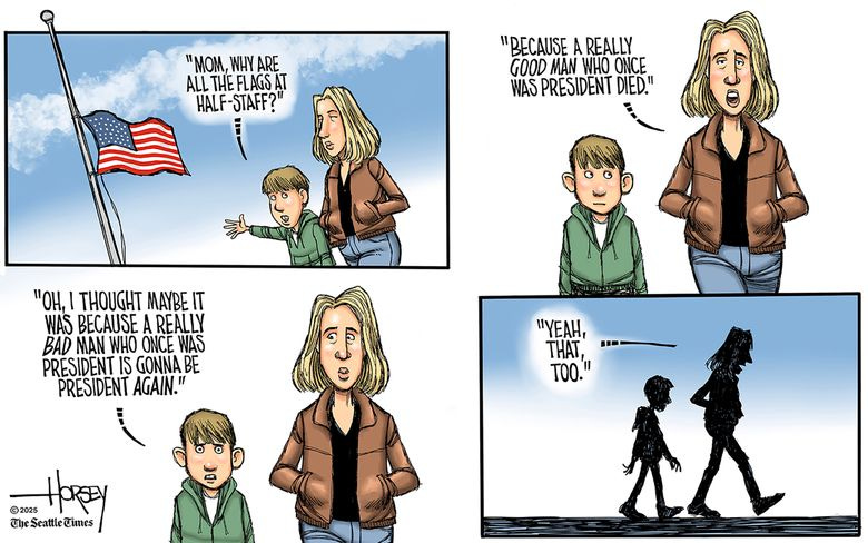 Nations, like people, have unique identities built on unlimited cultural factors that define who they are. Two of the most important factors are their traditions and the law. Our federal law is built on the foundation of our constitution called the USC or US Code. Section 4 of the USC defines the rules for all US flag issues. As that the US flag represents our nation, by default it represents our identity. Our identity, like the unique identity of any nation, is the backbone of what we consider our patriotic traditions. In the case of our flag at half-staff for 30 days honoring our deceased presidents, we have codified that tradition in our law. Trump, Speaker Mike Johnson and the entire GOP, have decided to conscientiously and clearly say, “they don’t give a damn.”