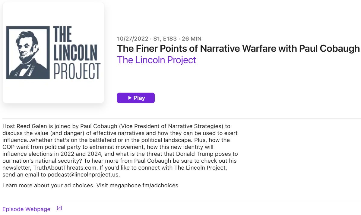 There is a great deal to chew on, in today’s essay, so I will not beleaguer these points any further, in order to give folks a chance to digest the depth and depravity of Trump and MAGA’s intentions regarding our republic. The threats are real and severe. I want to reemphasis here that neither Trump nor our GOP friends and family will change without professional resistance to theirs and Russia’s NW campaigns. Tragically, NW is so poorly understood in our national security communities and with no intentions of ever becoming proficient.