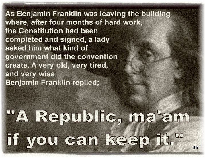 Sometimes, as in our current era, Benjamin Franklin’s admonition serves as the appropriate phrase;
