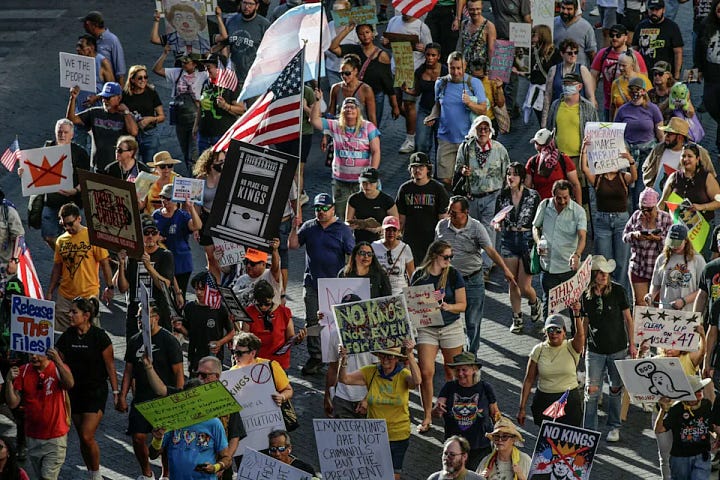 Here in Texas, an outgrowth of our protests has been to call for a “Greg Abbott Boycott” due to his hysteria of Texas National Guard mobilizations for these protests. Texas companies like Tesla, Dell, ExxonMobil, American Airlines, USAA, Southwest Airlines and AT&T are on the boycott target list. This is an important step in imposing costs on the corporate oligarchs that are behind the Republican assault on all working Texans. They are also underpinning the Trump installed oligarchy running our government. You might remember from earlier essays that our constitution is considered by Harvard and other scholars, as the “Anti-Oligarchy Constitution.”