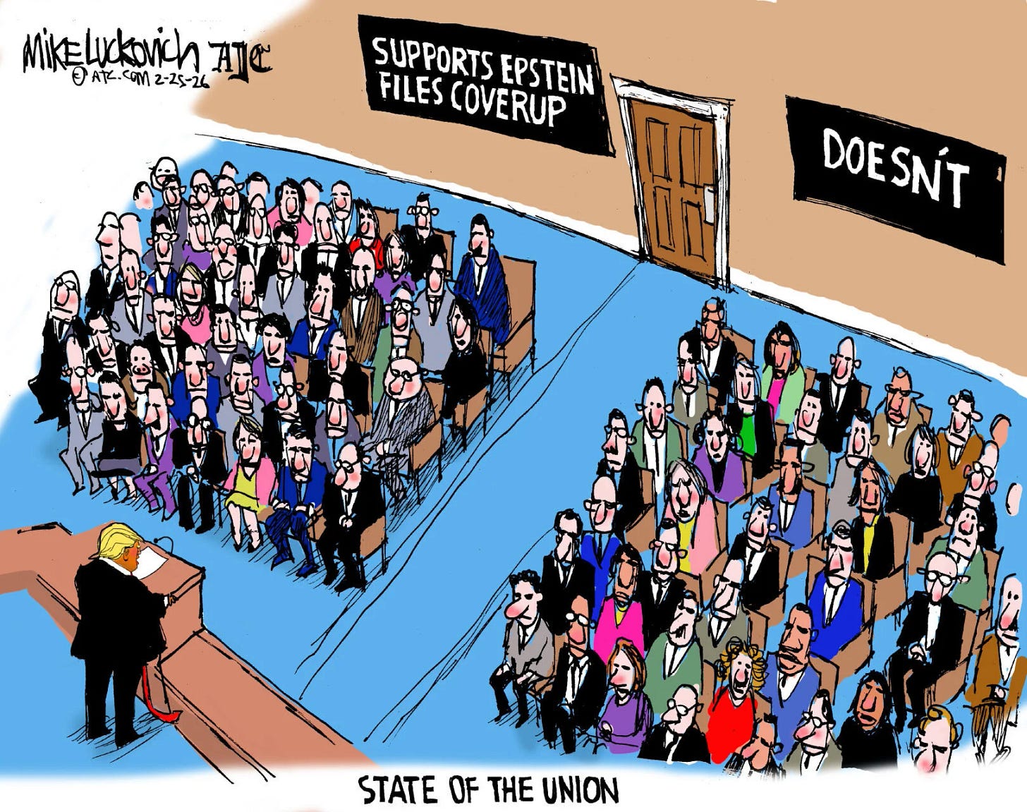 “The golden age of America is upon us”: That’s how Trump rounded off his State of the Union speech. And despite the obedient nods and claps of the Republicans in the audience, it became fairly clear in the hours after the enormously long address that none of them really believed it." - Trump’s State of the Union was such a hot mess that his own party doesn’t know what to do next - The Independent - Holly Baxter - February 25th, 2026