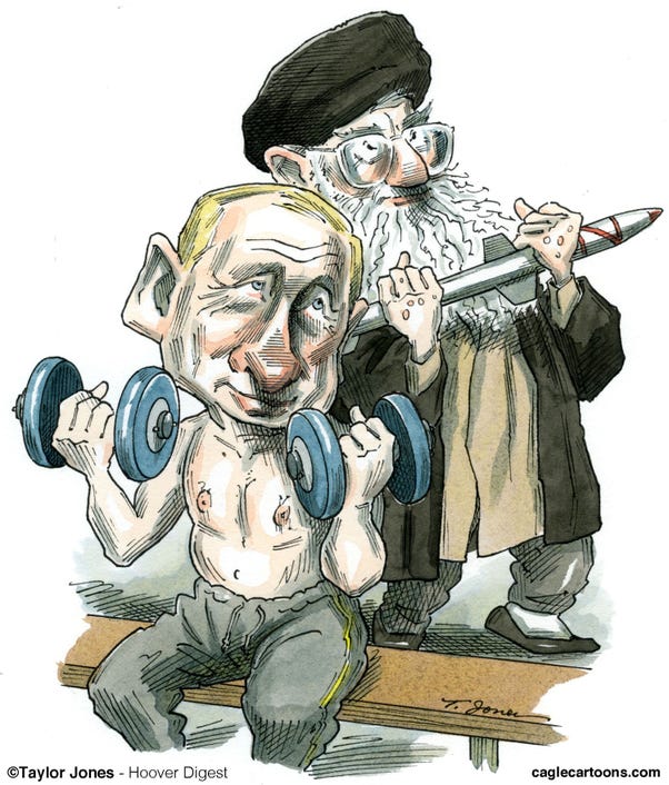 Iran has become a critical supplier of arms to Putin, who cannot produce enough to feed his gluttonous war machine. Missiles, drones, arms, technology from Iran has become a primary pillar of Putin’s external support. Putin has had to go begging to N. Korea as well. I believe that it is safe to say that, without the Republicans in Congress and Iran’s supplies, Putin’s army would be crawling backwards.