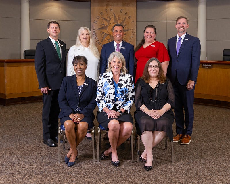 The North East ISD Board of Trustees and Superintendent make the "Team of Eight." Sean Maika, Ed.D., Superintendent Shannon Grona, President Terri Williams, Vice President Sandy Hughey, Secretary David Beyer, Trustee Steve Hilliard, Trustee Marsha Landry, Trustee Diane Sciba Villarreal, Trustee