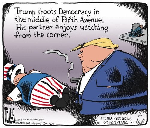 When the courts are no longer a co-equal branch of government, we are by default, living in an authoritarian state. Yes, the MAGA Republican Party, with support from a handful of elite oligarchs, Trump and of course Putin, is willfully and actively participating in this coup.