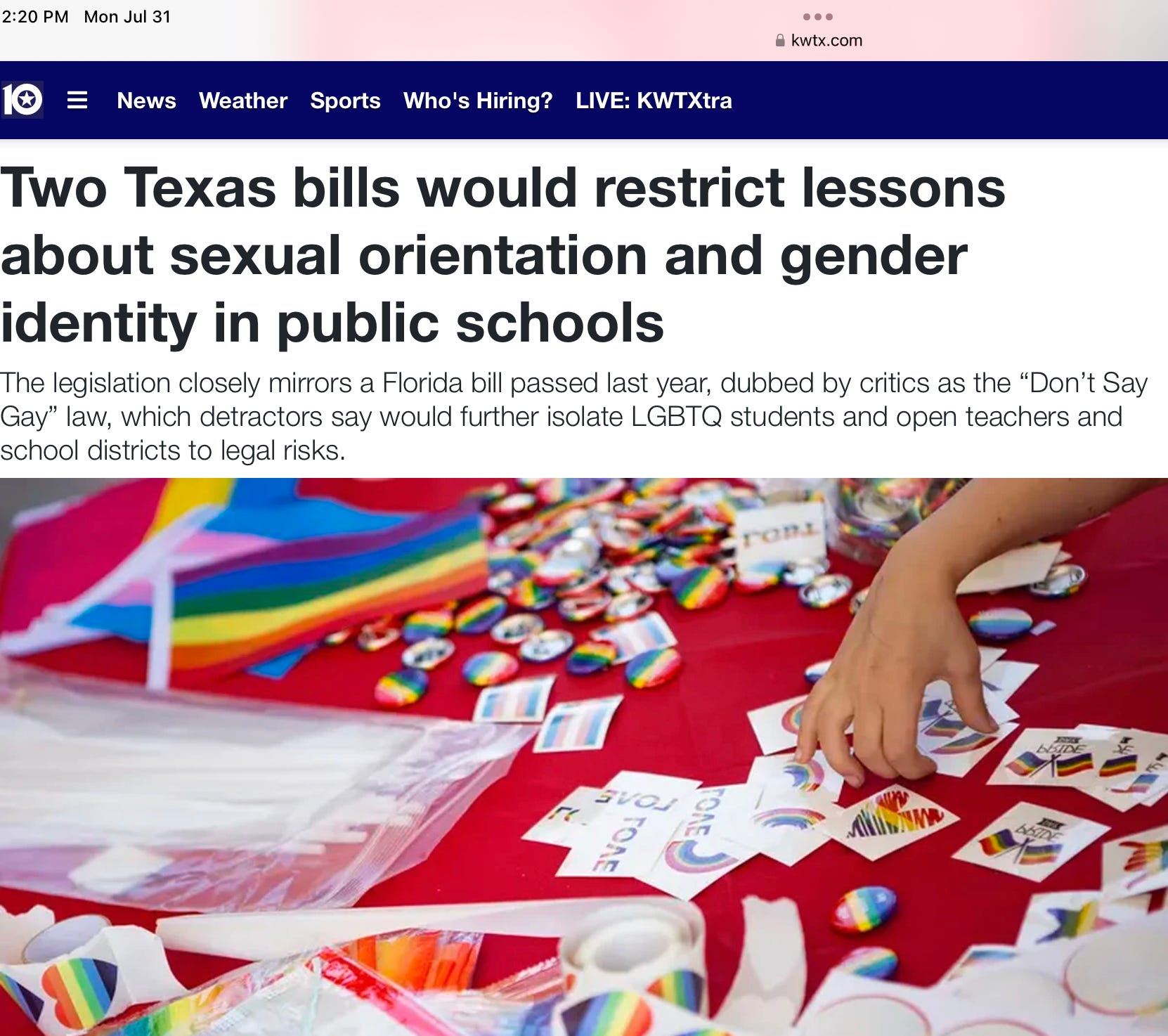 Any American that can read can see for themselves that there is nothing patriotic about this platform, despite Abbott and his fellow Confederates falsely using patriotism to frame their aberrant interpretation. This brings us full circle to their aggressive assault on public education and indirectly, the US and TX constitution. Here are just a couple examples of their disgraceful assault: