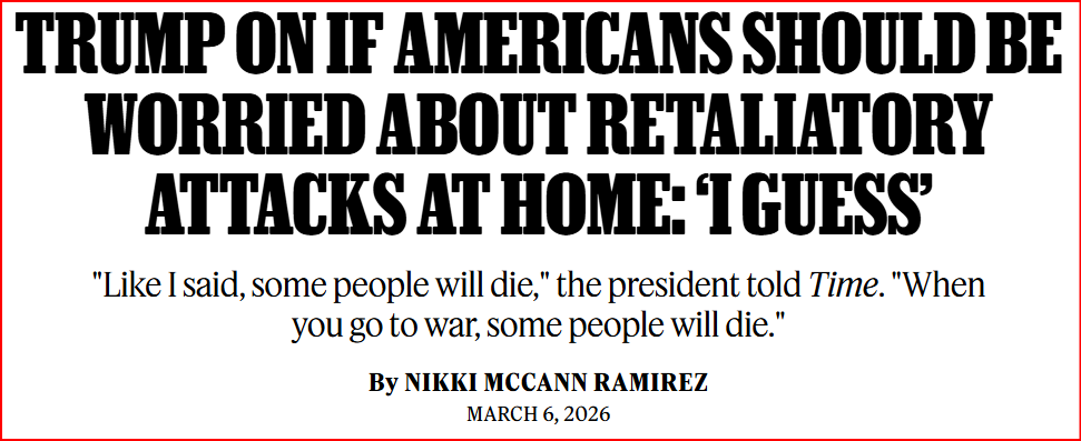 As someone who has seen many of the effects of terrorism up close and personal, watching the US remain willfully defenseless against what will likely follow, is maddening in the extreme. It’s not just DHS though. The FBI has a primary role here as well, which begs the question, why did Kash Patel abruptly fire critical Iran experts working in counterintelligence, just days before the war began? I don’t blame agents and analysts either as that with the wanton purging of expertise across the board by this administration, what these fine Americans work on, is not in their control. The epic failure to prepare for terrorism at all, is just one more failure of leadership that has come to define this Trump and Republican run administration.