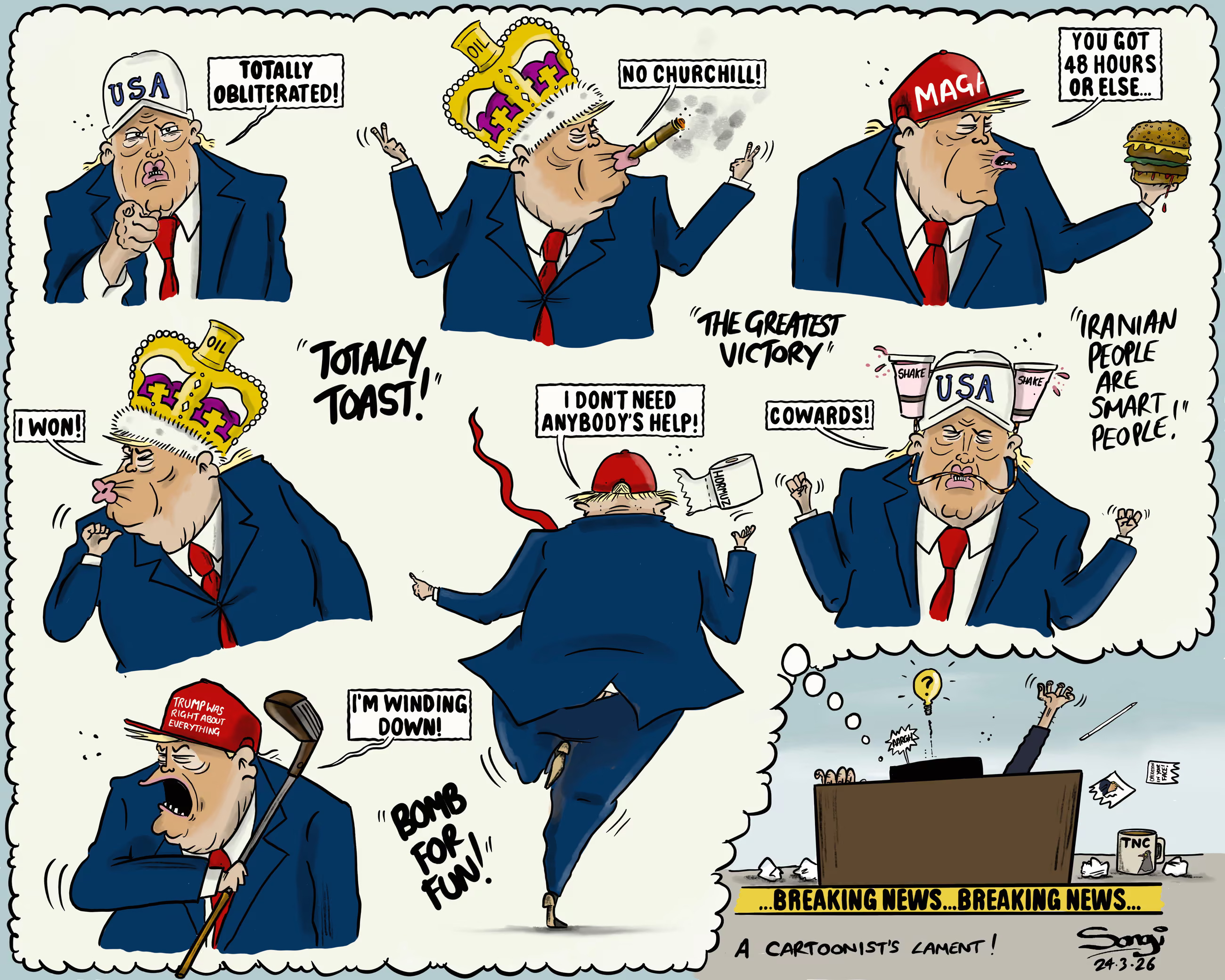 Outside of violating even more international laws regarding war, Trump has no cards at all. Threatening the “end of a civilization” or destroying all of Iran’s civilian infrastructure, are both overt and serious violations of all international law regarding armed conflict. The US under this administration, is a pariah to most of the world. The only option left to the US is to put massive numbers of troops on the ground and hope for the best. Even if we won, Iran still has the wherewithal to undo pretty much all of the region’s oil infrastructure. In fact, they have threatened to do so in response to Trump’s boisterous and impotent threats. This would toss the global economy into freefall. Such a freefall would make the Great Depression of the 1930s look like a minor hiccup in the global economy.